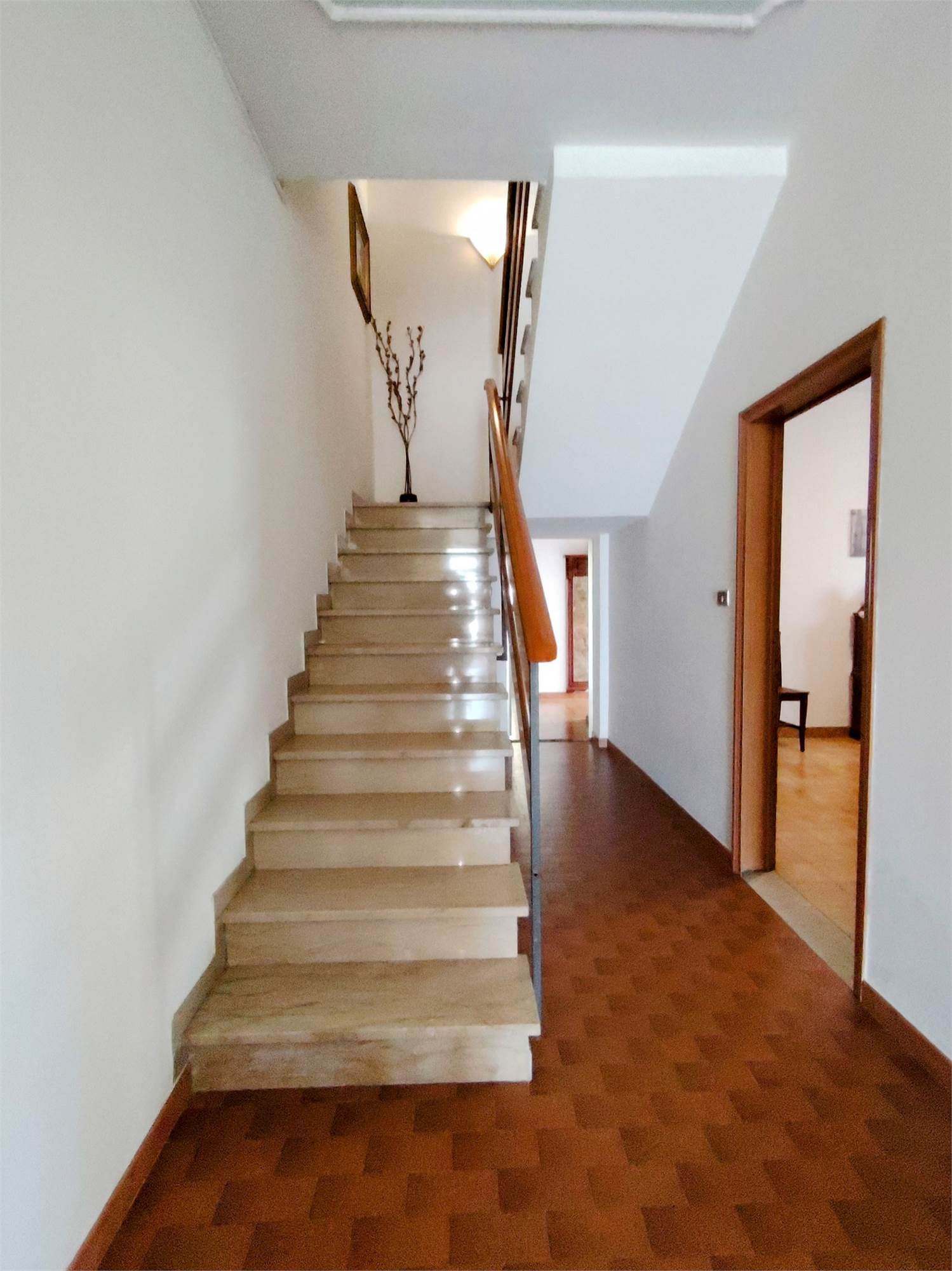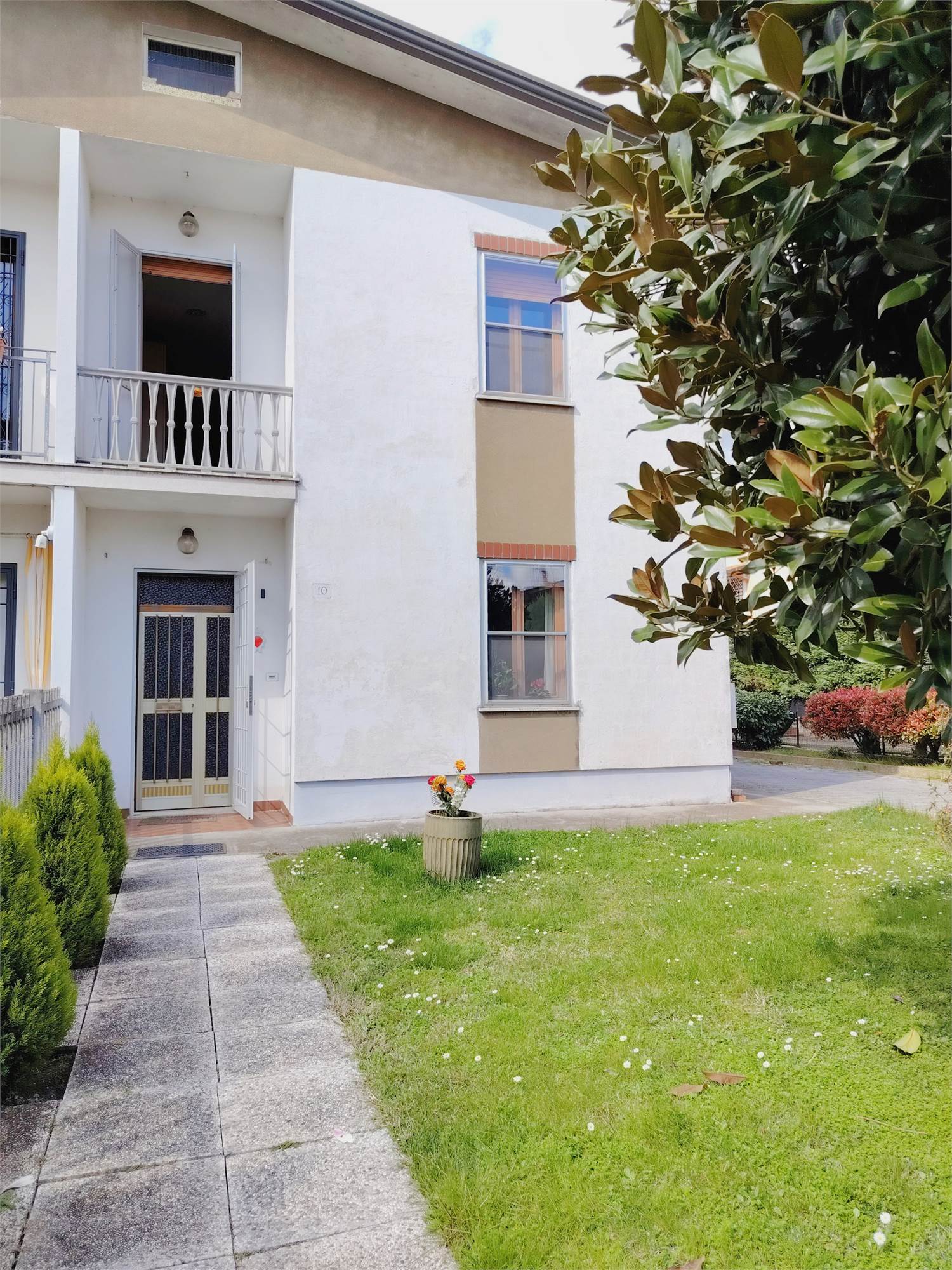 Situata in una via interna, lontana dal traffico e immersa nel silenzio, questa proprietà è già catastalmente e funzionalmente suddivisa in due appartamenti indipendenti.