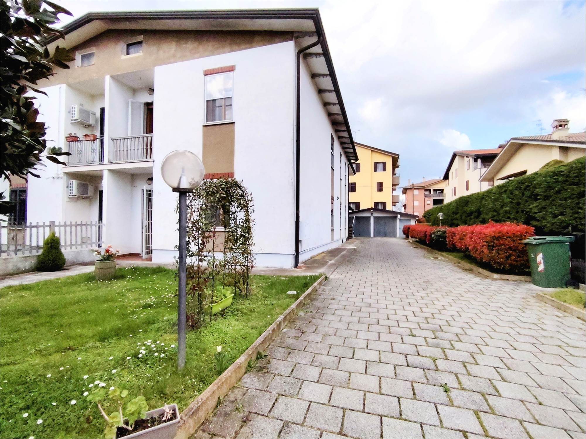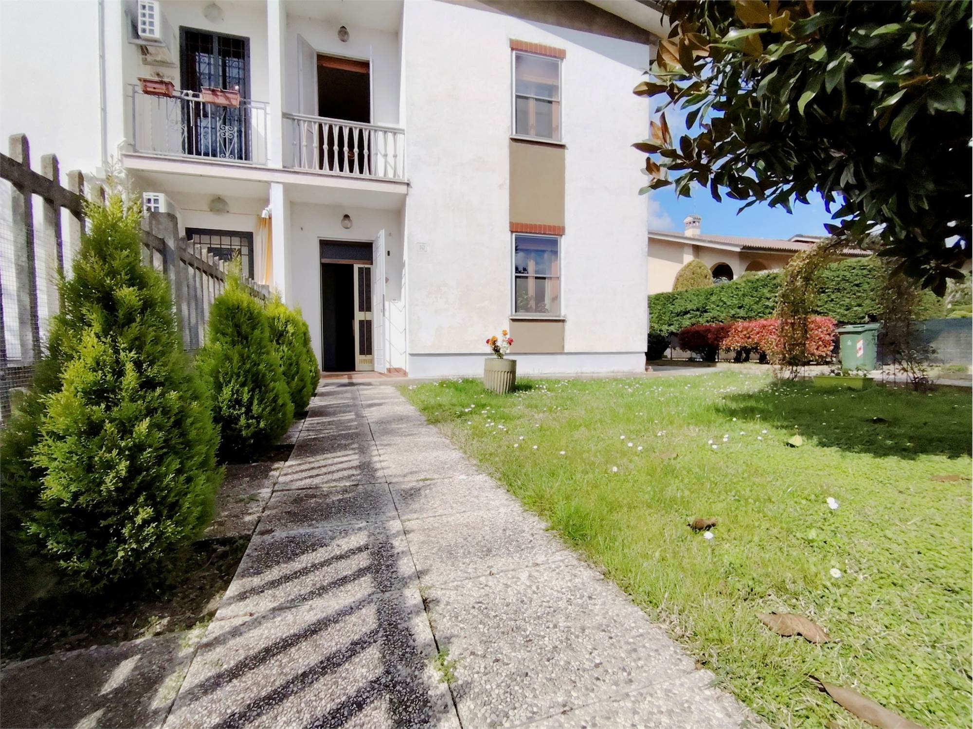 Situata in una via interna, lontana dal traffico e immersa nel silenzio, questa proprietà è già catastalmente e funzionalmente suddivisa in due appartamenti indipendenti.